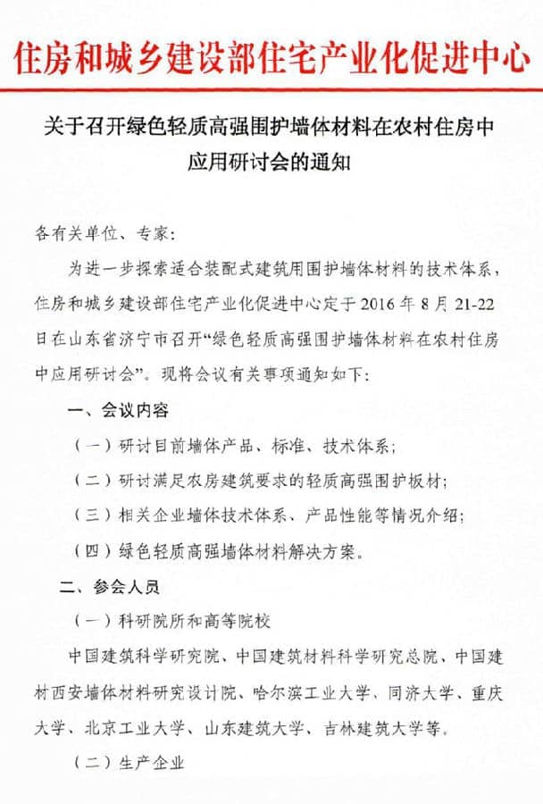行業(yè)要聞:綠色輕質(zhì)高強(qiáng)圍護(hù)墻體材料在農(nóng)村住房中應(yīng)用研討會(huì)通知